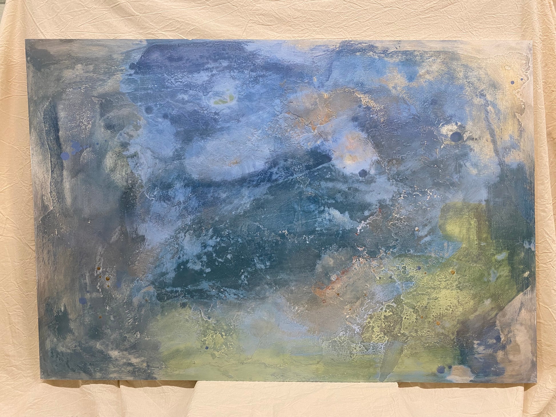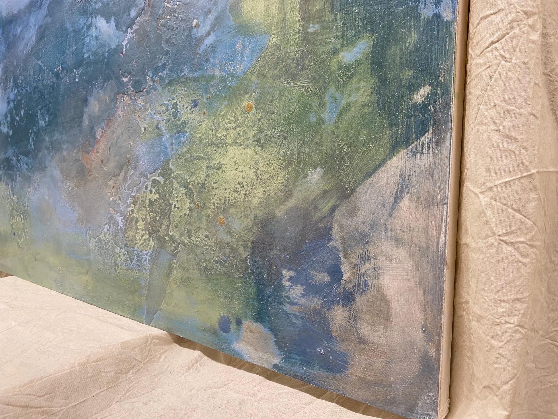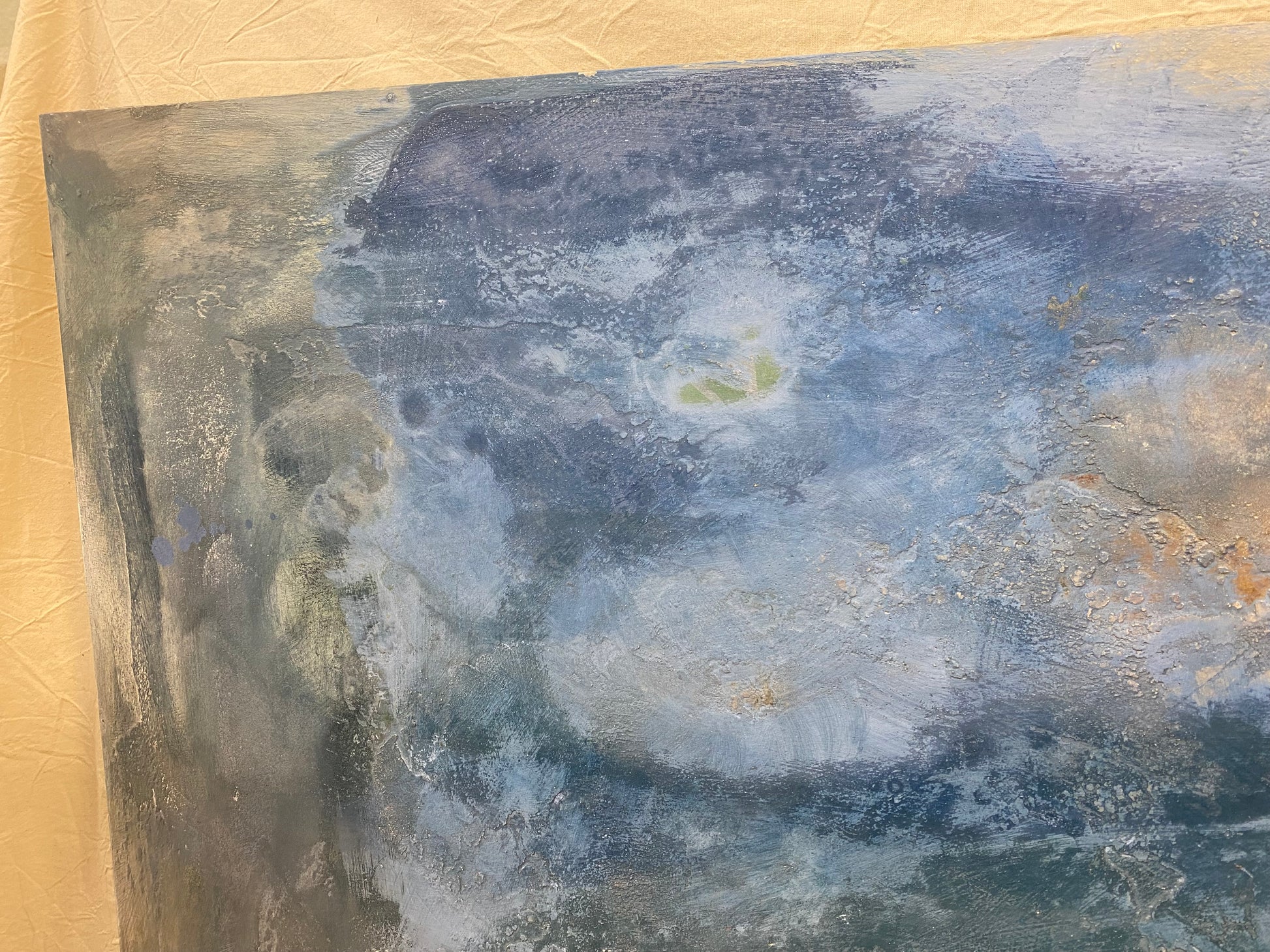- Quadro su pannello di legno dipinto a mano. Colori acrilici a base di calce e marmorino.